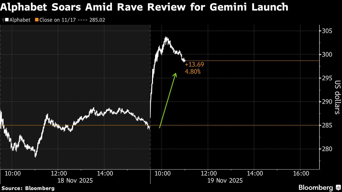 Alphabet Shares Soar on ‘Rave Reviews’ for New Gemini AI Model